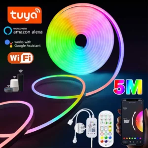 RGB LED Neon Light Strip, Wi-Fi, aplicativo Tuya, vida inteligente, TV, casa, iluminação de decoração, DC 5V, 1m, 2m, 3m, 4m, 5m
