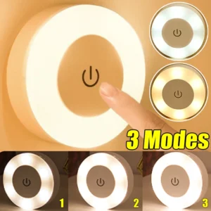 USB Charged Magnetic LED Night Lights, Escurecimento Redondo Sensor Lâmpadas, Luz de parede para cozinha, quarto, Guarda-roupa, Iluminação do armário, 3 modos