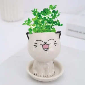 Vasos de cerâmica para casa e jardim, Pote Decorativo de Porcelana, Bandeja Base para Desktop, Gato bonito, Planta Suculenta, Decorativa