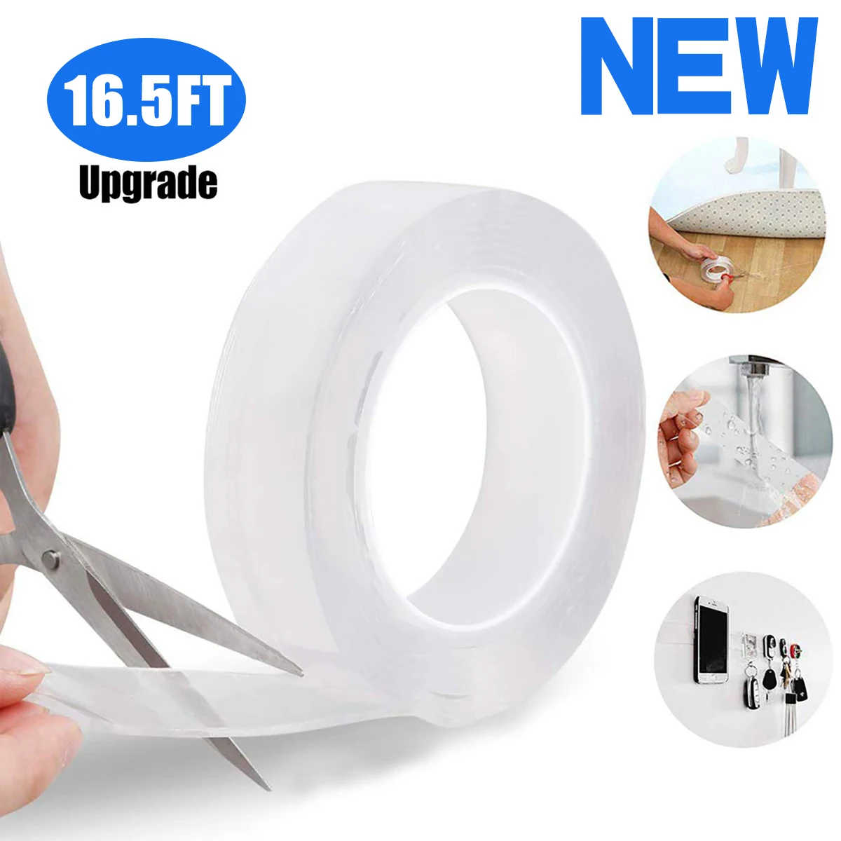 Fita Nano Dupla Face Reutilizável Transparente, Fitas Adesivas Impermeáveis, Cozinha e Fontes de Banheiro Limpáveis, Novo, 5m