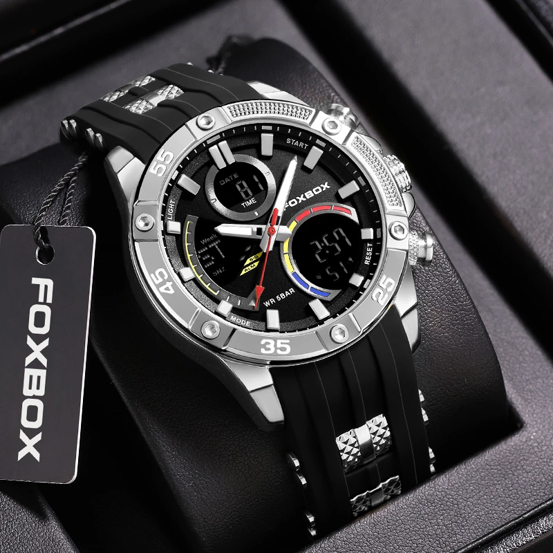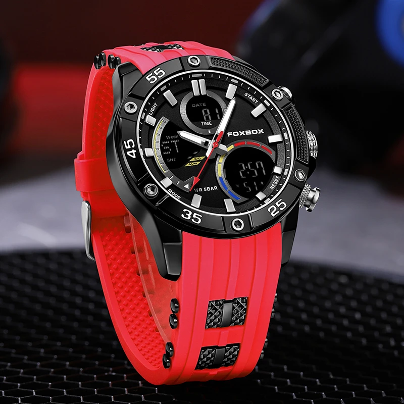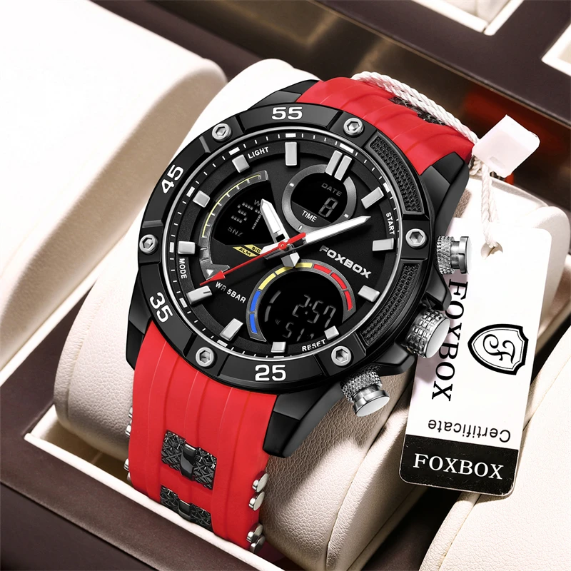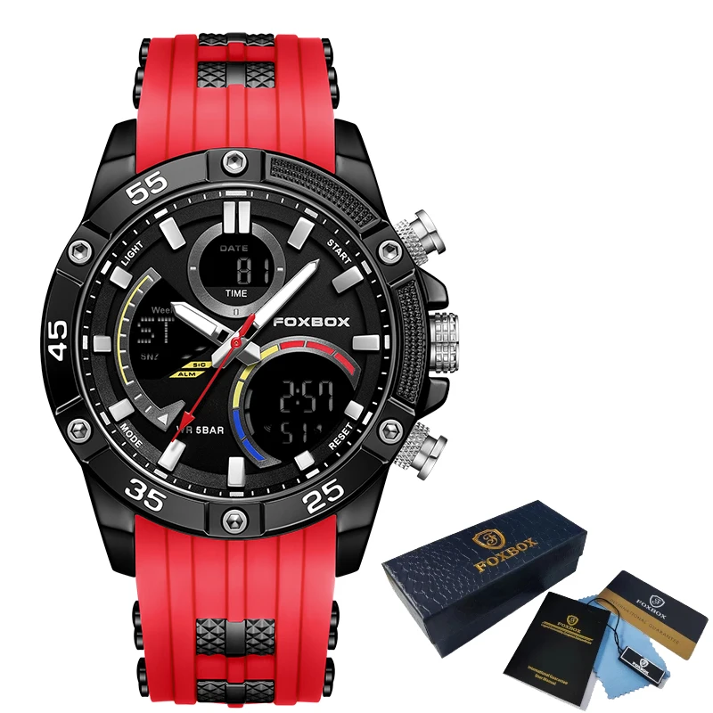LIGE-Relógio Militar Masculino Impermeável Silicone Strap, Relógios Esportivos, Cronógrafo Digital, Relógio de Luxo, Caixa Incluída