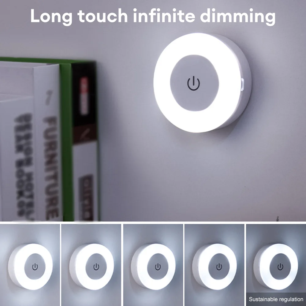 Mini LED Touch Sensor Night Lights, USB Recarregável, Cozinha, Quarto, Base magnética, Luz de parede, Redondo, Portátil, Escurecimento, Lâmpada da noite