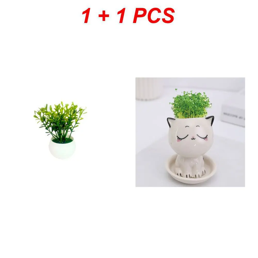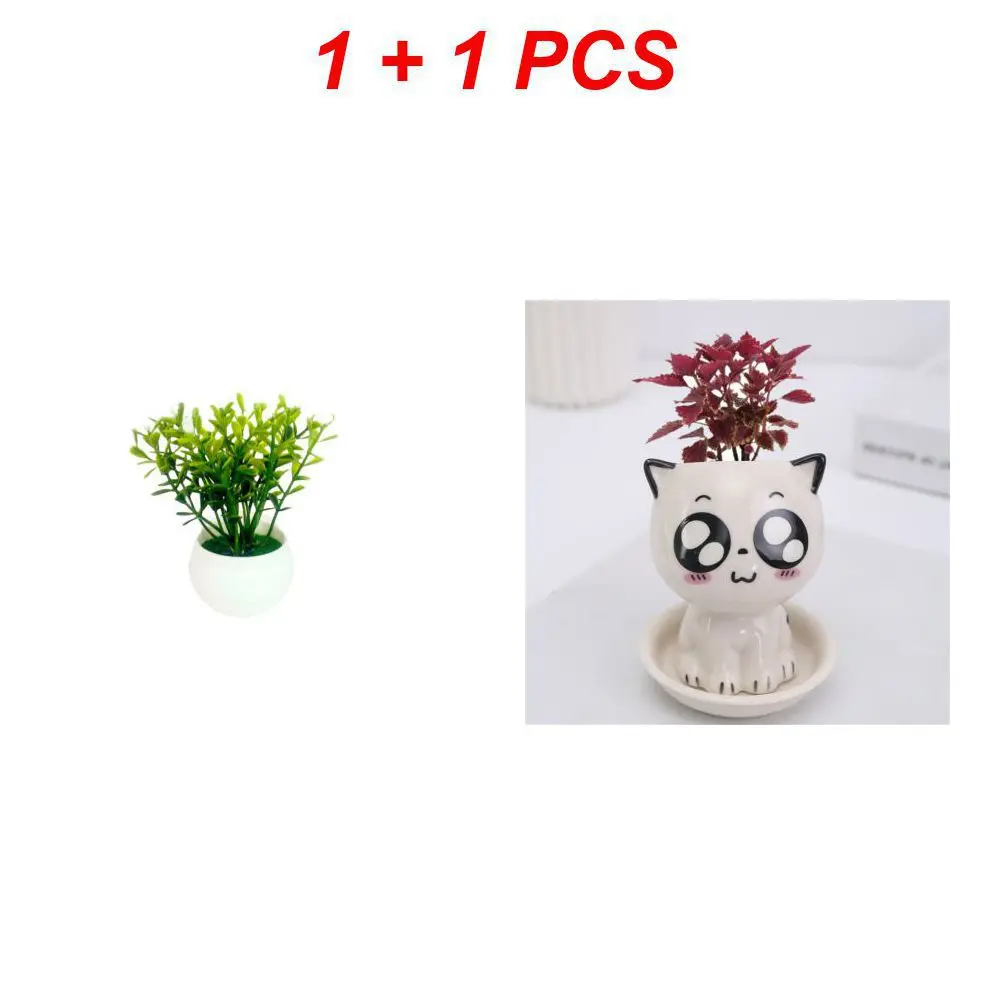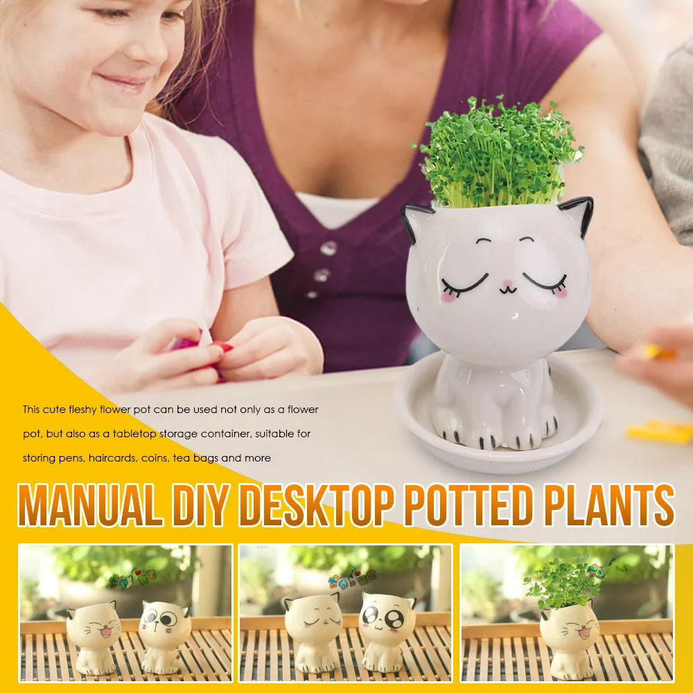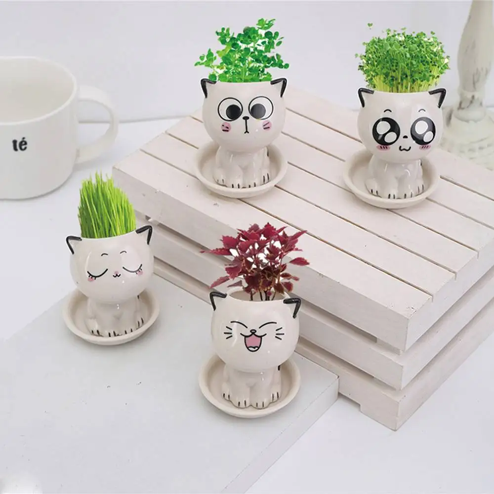 Mini vaso em forma de gato cerâmico Bonsai bonito dos desenhos animados, Múltiplas expressões, Desktop Potted Decor, Pequenos ornamentos, Vasos de plantas