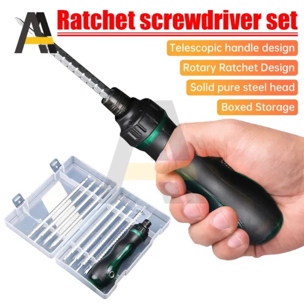Multiuso Ratchet Screwdriver Set, Dual Purpose, Telescópico, Magnético, Isolado, Reparação de Segurança, Ferramentas Manuais, Cruz, Reta