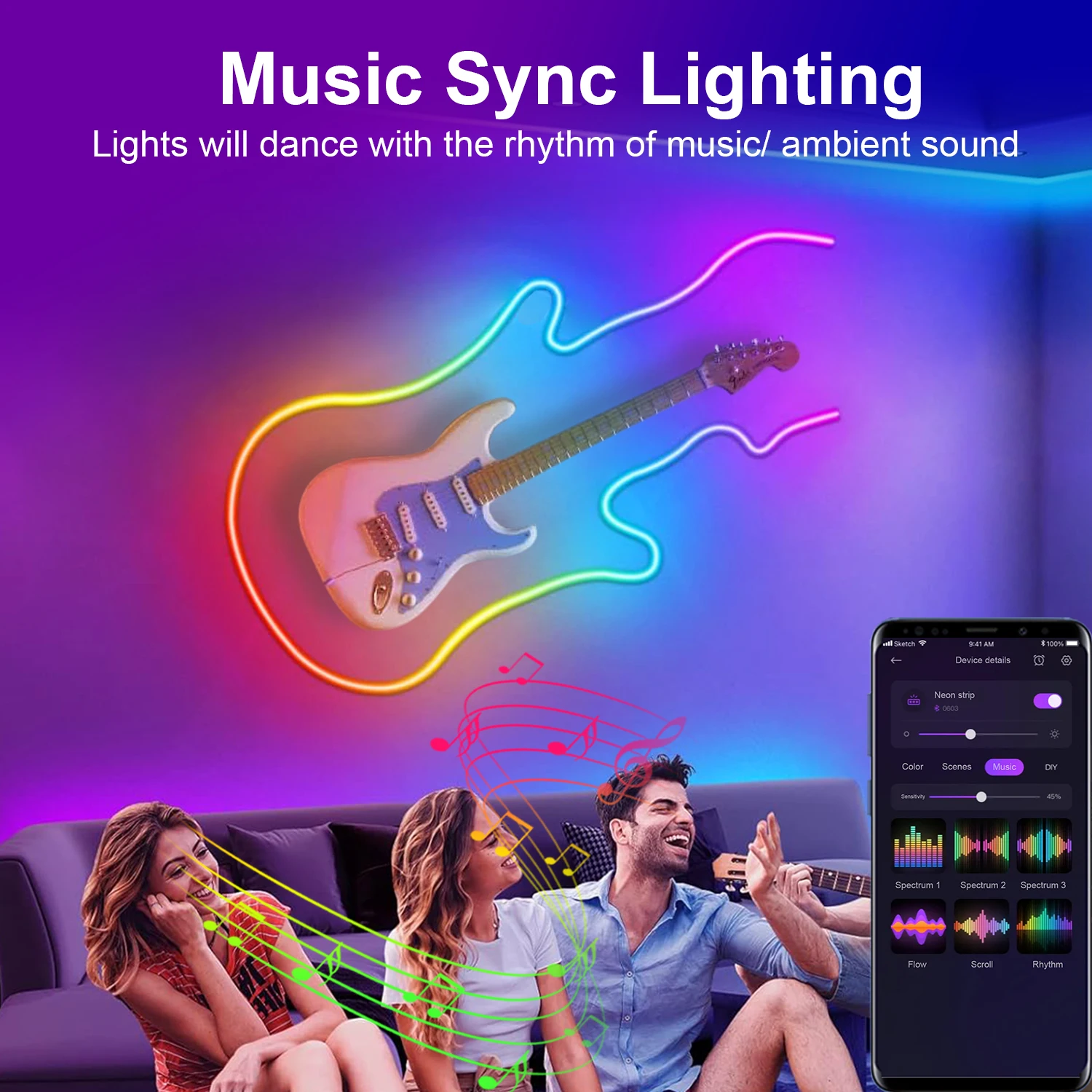 Specific Features 3: RGBW lighting effects, smart app control, adjustable brightness, music sync,100+ scene mode and 16 million colours RGBW lighting effects
