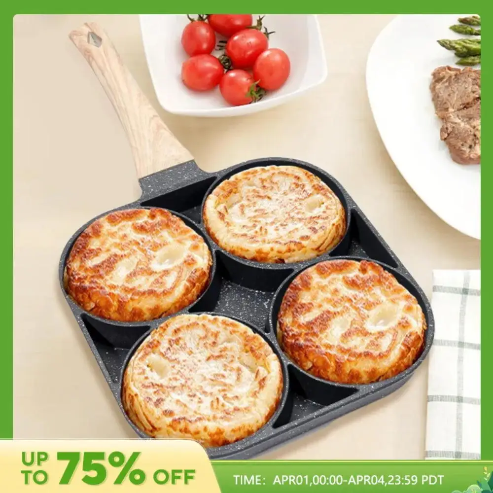Omelete de ovo antiaderente espessado, Breakfast Maker, Panelas de indução, Panela Frilled Steak Cooking Pan, Hamburger e Pão, 4 Buracos