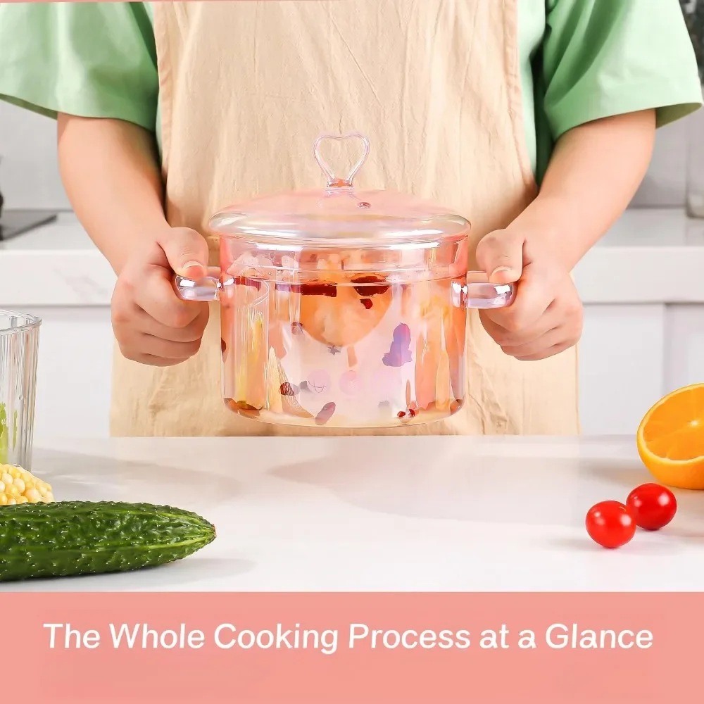 Feature 1: Pink Glass Saucepan with Lid and Handle